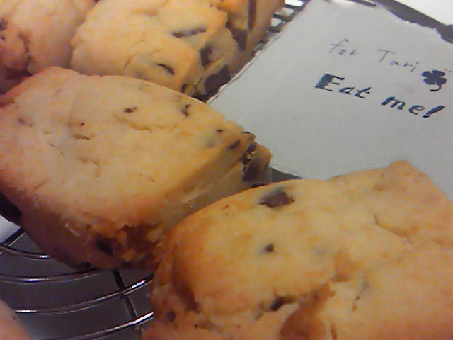 マーガリン買ってきて、スタバ風チョコチップスコーンを作りました。