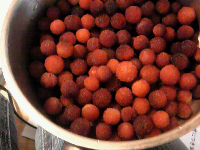 *ヤマモモの木が学校の敷地に何本かあって、実がたわわだった。ということを覚えていたのが功を奏し、
